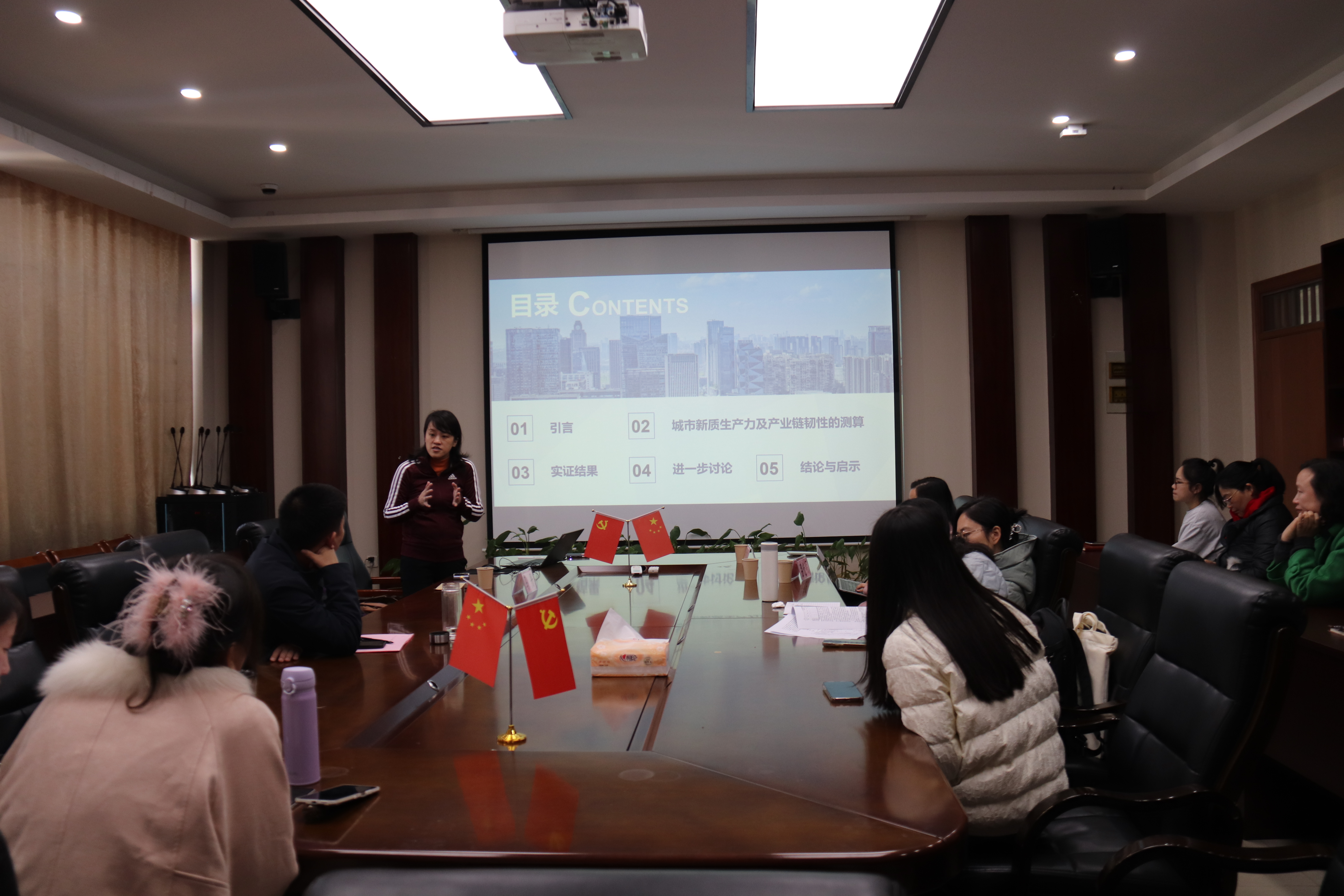 马丹教授作题为“新质生产力是否促进了产业链韧性”报告。马教授利用城市尺度投入产出表分产业测算各地级市产业链韧性,从城市层面详细探讨了新质生产力对产业链韧性的具体影响,分析了其通过缓解资源错配和推动产业结构升级来提升产业链韧性的具体路径,为理解新质生产力的赋能增效作用提供了科学视角。