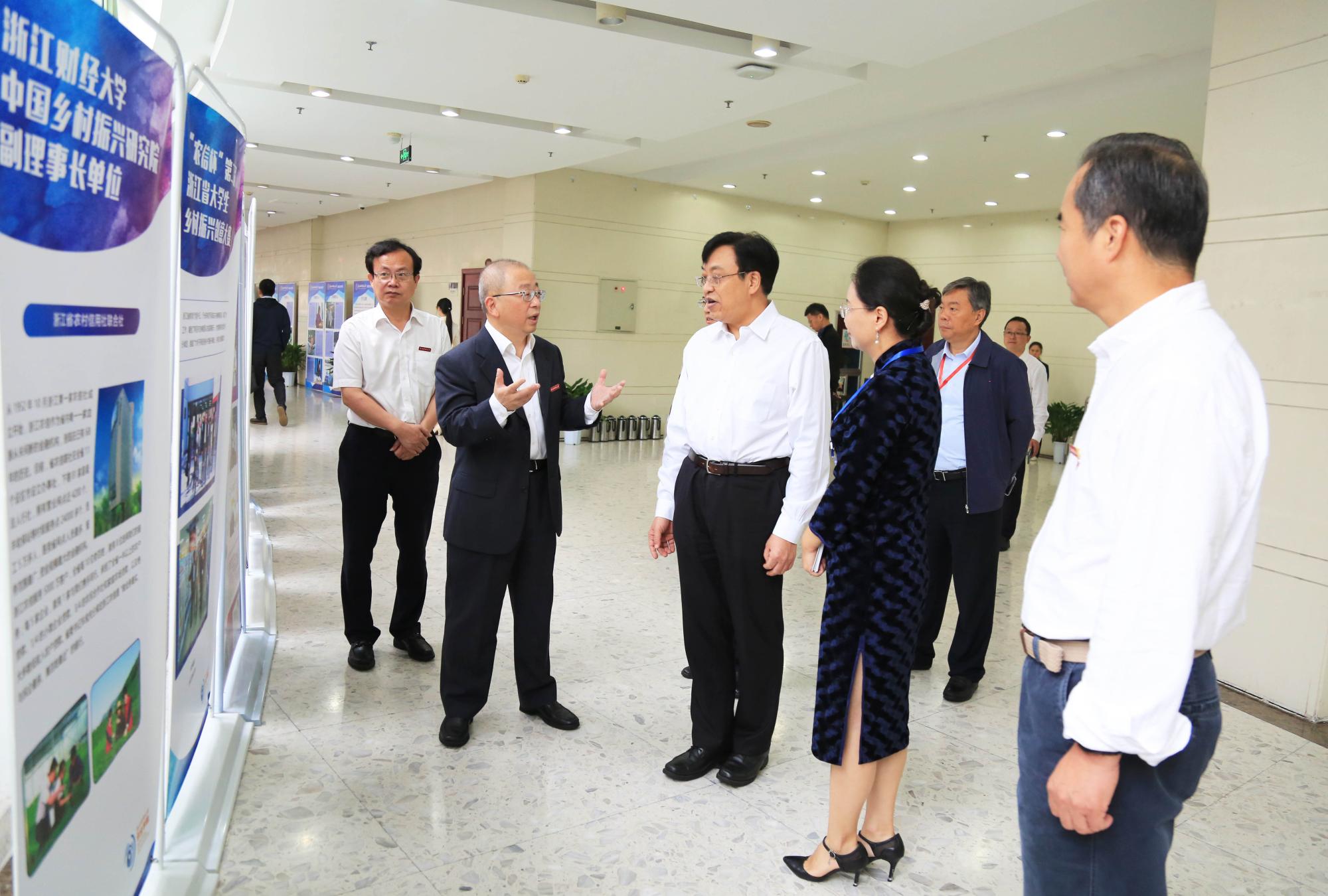 宁吉喆、冯飞一行在校党委书记李金昌、校长钟晓敏等陪同下参观了学校“孙冶方经济科学奖文献馆”“诺贝尔经济学奖文献馆”、大学生乡村振兴创意大赛和社会实践优秀成果展,宁吉喆、冯飞等对我校办学成果给予高度肯定,希望学校能继续充分发挥人才优势、专业优势在服务地方经济社会建设中展现新作为。