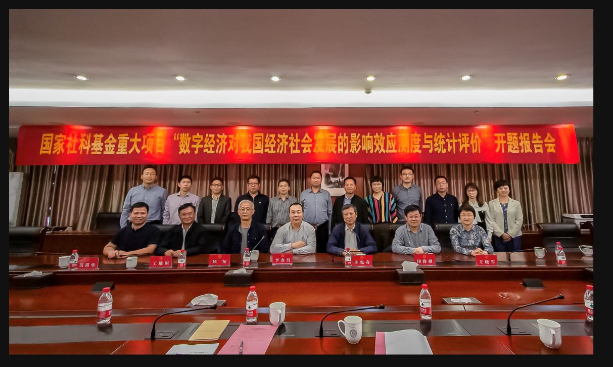院长洪兴建教授主持的国家社科重大招标项目“数字经济对我国经济社会发展的影响效应测度与统计评价”开题报告会在我校下沙校区举行。报告会邀请了清华大学中国经济社会数据研究中心主任许宪春教授为专家组组长,北京师范大学国民核算研究院邱东教授、国家统计局统计科学研究所闾海琪所长、东北财经大学副校长王维国教授、中国人民大学统计学院院长王晓军教授为专家组成员。校党委书记李金昌教授、省社科联副主席陈先春、省社科联规划处四级调研员况落华等出席报告会。