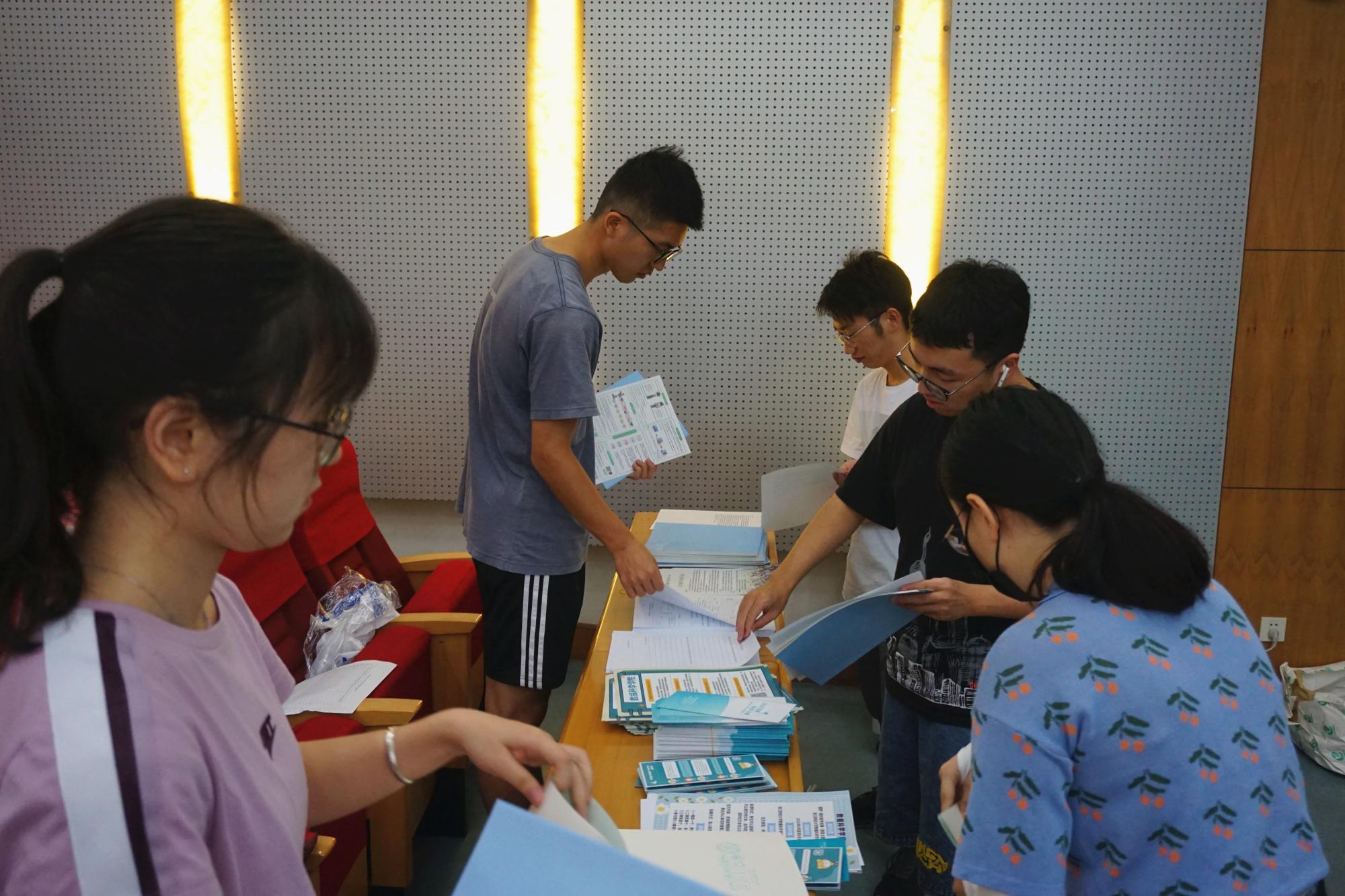各本科生党支部共6名代表来到录取通知书分装和寄送工作现场,他们合理分工,以认真严谨的态度,经过3个多小时的紧张工作,完成了182份录取通知书的分装任务。