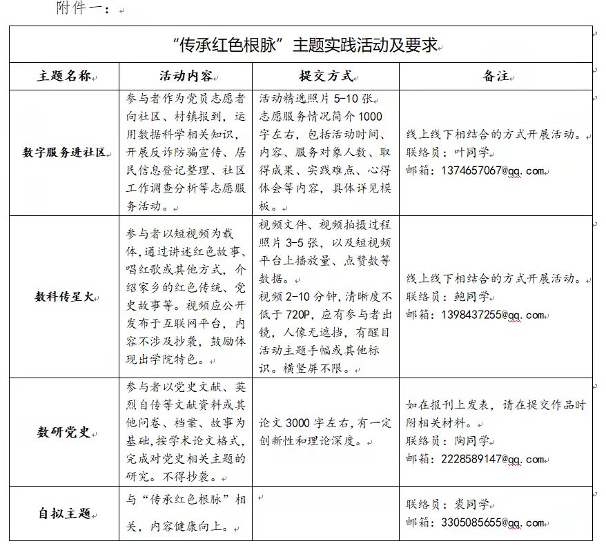 本次活动下设“数字服务进社区”“数科传星火”“数研党史”三个推荐的活动主题,也可以按照实际情况自拟主题,学院党建中心把关审核,参考主题及要求详见附件一。
