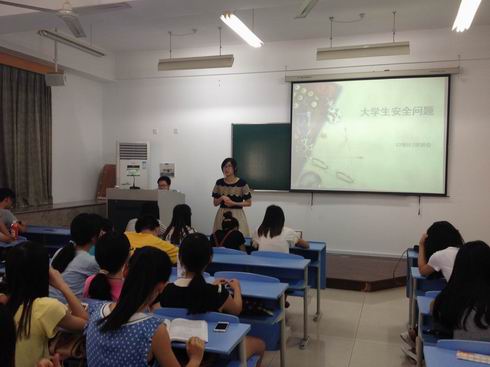 班会以近期安全问题为背景,向大家讲述火灾、防盗、传销、出行安全等相关知识,并着重让同学们就暑期女大学生频频失联的问题展开讨论,并对女大学生如何防护自身安全的问题发表意见。