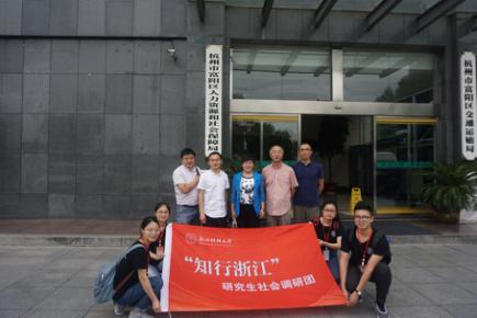 “知行浙江”研究生社会调研团队在罗季老师的带领下,跟随杭州市就业服务局王坚副局长及郭洪锦副处长,调研走访了杭州市辖典型区县市——西湖区、江干区、富阳区、建德市人力资源与社会保障局,就杭州市区县市新增就业人口优化配置问题展开了全面、深入的调查与探讨。