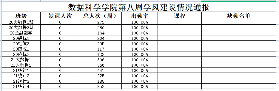 为进一步培育优良学风,构建禁漫岛 学风建设的长效机制,营造良好的学习氛围,推进内涵建设,构建优良院风,学院对所有大一、大二班级统一上的课程及晚自习进行了课前全覆盖点名。现将点名情况做如下通报。