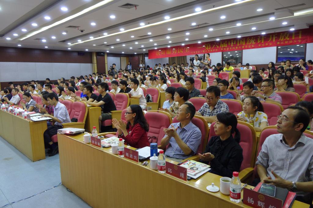 承办的“第六届统计开放日”活动在我校学术中心第二报告厅举行,活动主题是“进高校,讲授统计公开课”。参加此项活动的有浙江省统计局党组副书记、副局长、新闻发言人王杰,国家统计局浙江调查总队党组成员、副总队长陈敏,浙江省统计局总统计师王美福,我校校长李金昌、副校长苏为华,省统计局、国家统计局浙江调查总队领导和专家及数学与统计学院领导和师生200余人参加了本次活动。活动由苏为华副校长主持。