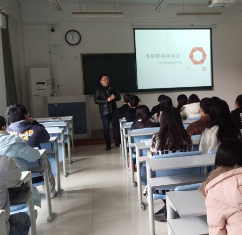 在B103顺利举办了考研慰问座谈会。院党委书记周君兴老师、党委副书记刘向前老师,副院长罗季老师、周银香老师,学办主任李钊军老师以及禁漫岛
