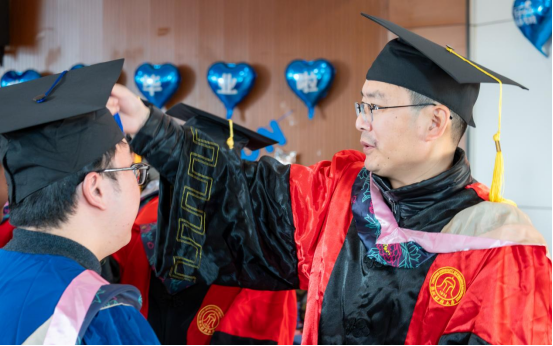 接着,学院举行了硕士研究生学位授予仪式,学院党委副书记王文婷宣读学位授予名单,院领导班子及导师代表为全体毕业生拨穗并颁发学位证与毕业证书。