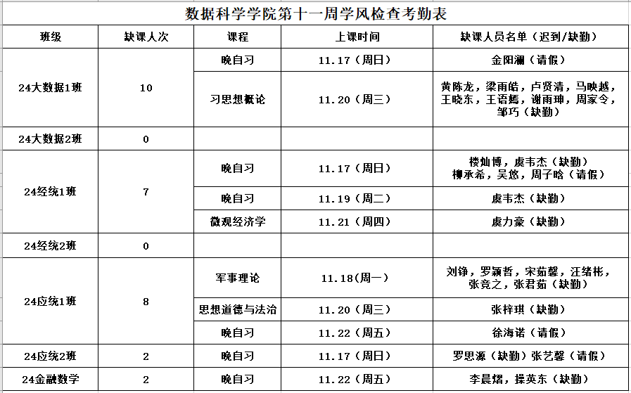 为进一步培育优良学风,构建禁漫岛 学风建设的长效机制,营造良好的学习氛围,学院对大一各班晚自习及专业课进行全覆盖点名,对公共课程进行抽查点名,现将考勤情况公布如下: