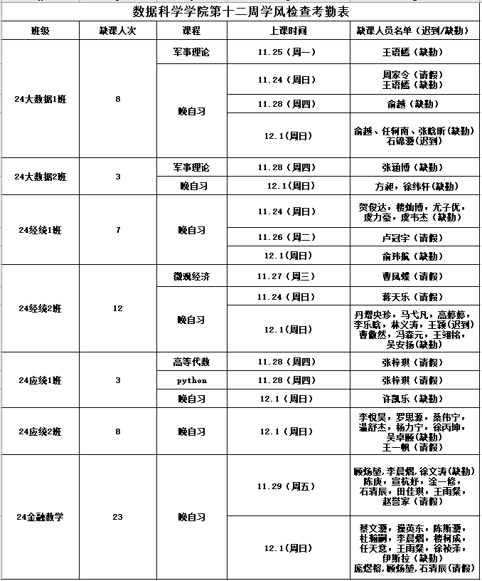 为进一步培育优良学风,构建禁漫岛 学风建设的长效机制,营造良好的学习氛围,学院对大一各班晚自习及专业课进行全覆盖点名,对公共课程进行抽查点名,现将考勤情况公布如下: