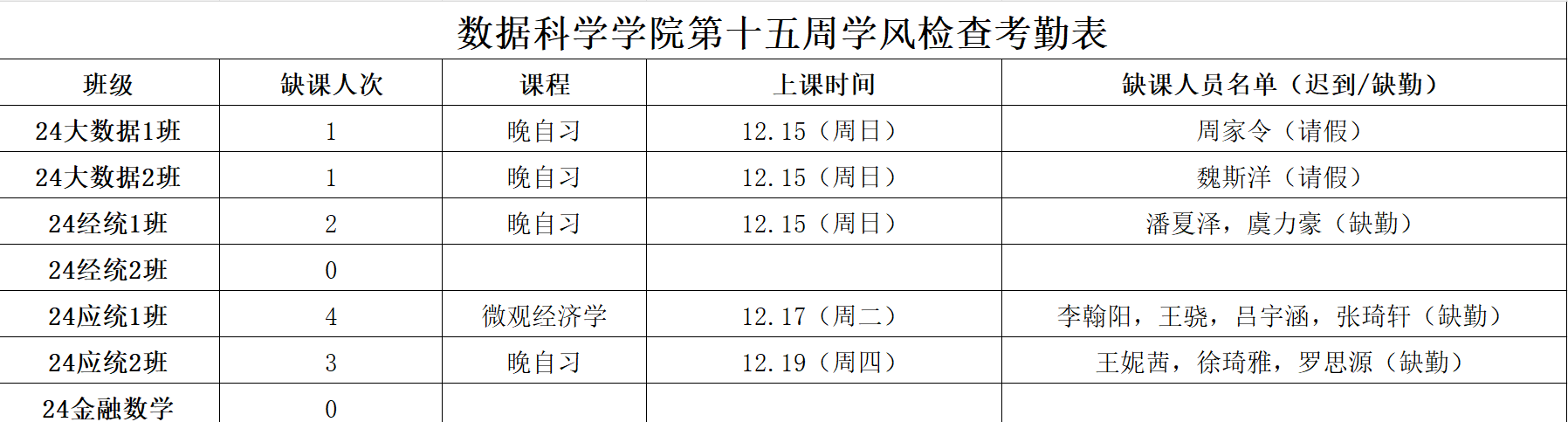 为进一步培育优良学风,构建禁漫岛 学风建设的长效机制,营造良好的学习氛围,学院对大一各班晚自习及专业课进行全覆盖点名,对公共课程进行抽查点名,现将考勤情况公布如下: