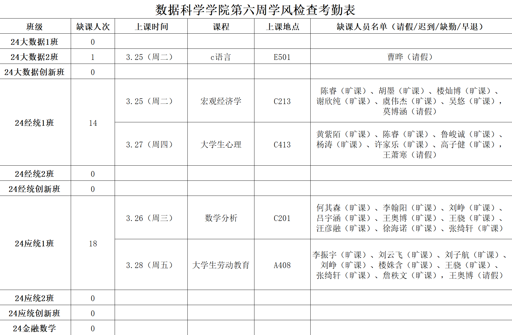 学院后续将常态化开展学风巡检抽查,希望同学们严守课堂行为规范,禁止“三无”行为,杜绝旷课、迟到、早退、代课等不良现象,共同营造“好学、勤学、乐学”的优良学气。