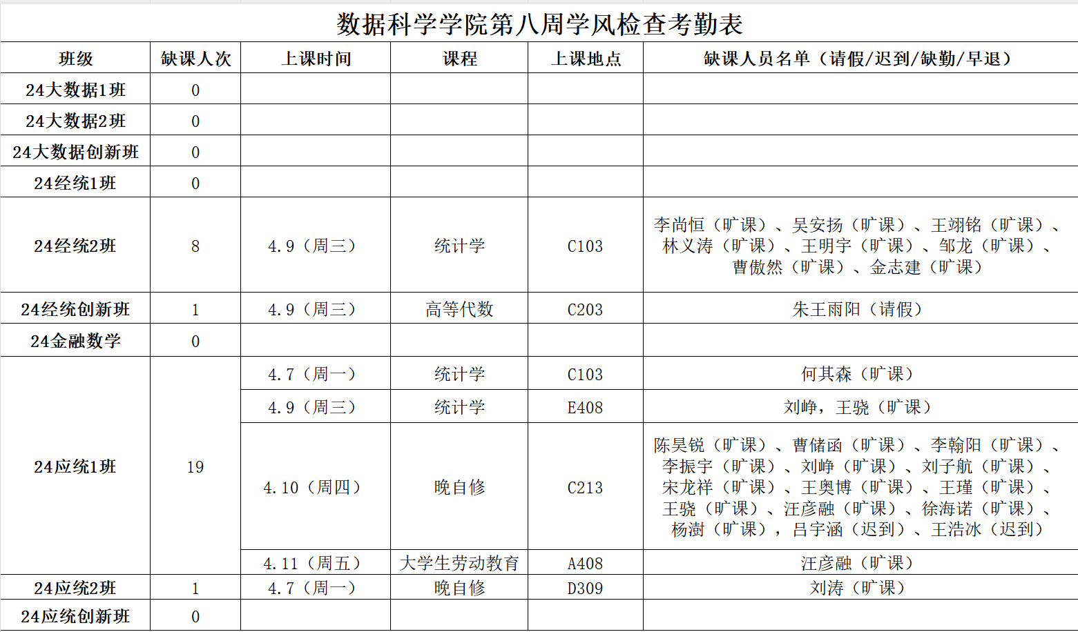 学院后续将常态化开展学风巡检抽查,希望同学们严守课堂行为规范,禁止“三无”行为,杜绝旷课、迟到、早退、代课等不良现象,共同营造“好学、勤学、乐学”的优良学气。