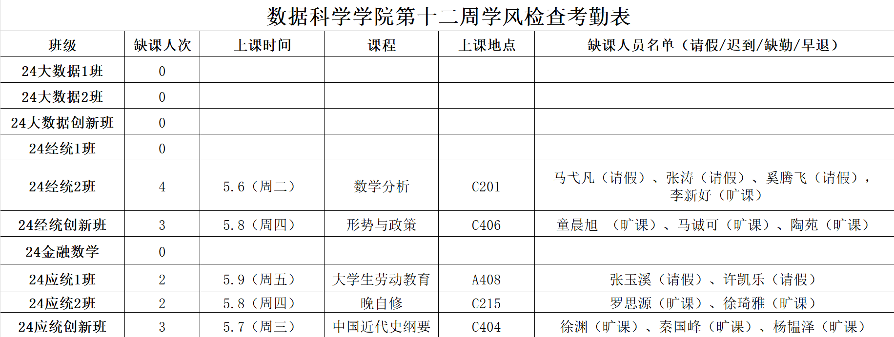 学院后续将常态化开展学风巡检抽查,希望同学们严守课堂行为规范,禁止“三无”行为,杜绝旷课、迟到、早退、代课等不良现象,共同营造“好学、勤学、乐学”的优良学气。