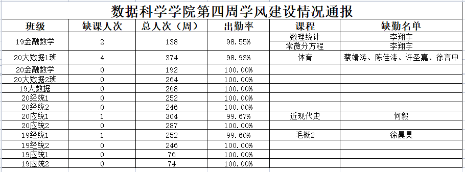 为进一步培育优良学风,构建禁漫岛 学风建设的长效机制,营造良好的学习氛围,推进内涵建设,构建优良院风,学院对所有大一、大二班级统一上的课程进行了课前全覆盖点名。现将点名情况做如下通报。