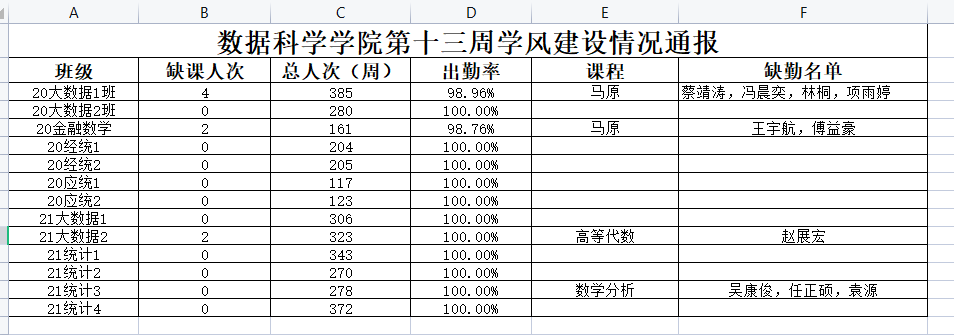 为进一步培育优良学风,构建禁漫岛 学风建设的长效机制,营造良好的学习氛围,推进内涵建设,构建优良院风,学院对所有大一、大二班级统一上的课程及晚自习进行了课前全覆盖点名。现将点名情况做如下通报。