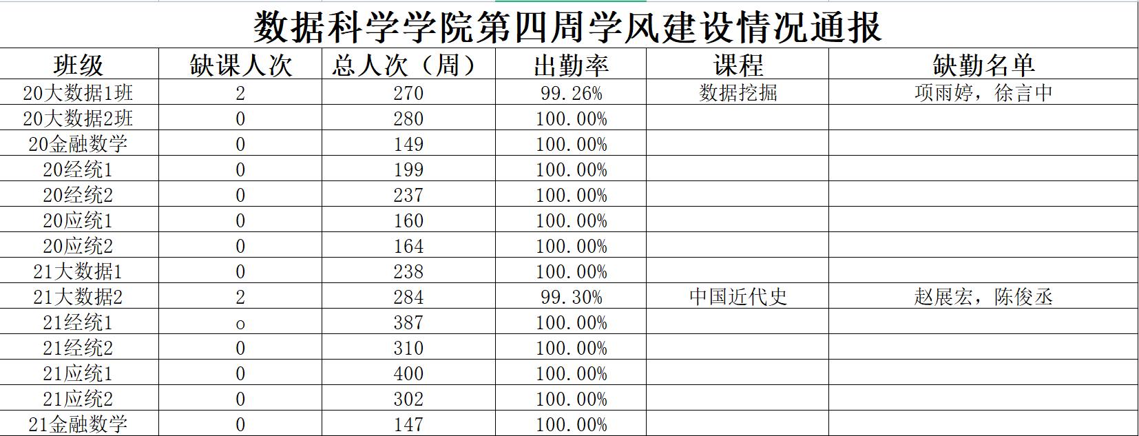 为进一步培育优良学风,构建禁漫岛 学风建设的长效机制,营造良好的学习氛围,推进内涵建设,构建优良院风,学院对所有大一、大二班级统一上的课程及晚自习进行了课前全覆盖点名。现将点名情况做如下通报。
