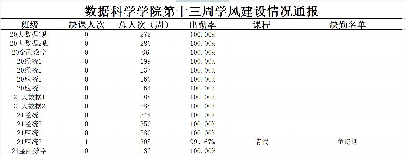 为进一步培育优良学风,构建禁漫岛 学风建设的长效机制,营造良好的学习氛围,推进内涵建设,构建优良院风,学院对所有大一、大二班级统一上的课程及晚自习进行了课前全覆盖点名。现将点名情况做如下通报。