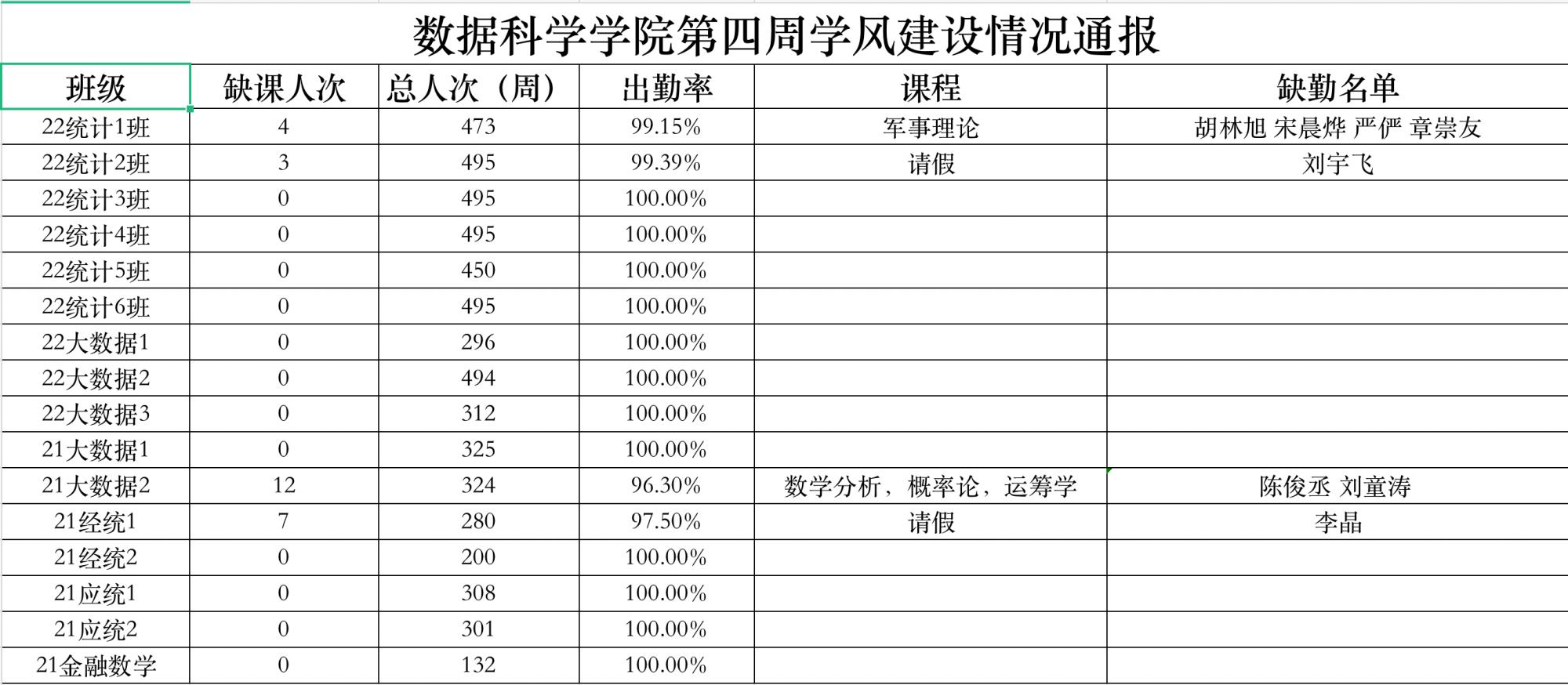 为进一步培育优良学风,构建禁漫岛 学风建设的长效机制,营造良好的学习氛围,推进内涵建设,构建优良院风,学院对所有大一、大二班级统一上的课程及晚自习进行了课前全覆盖点名。现将点名情况做如下通报。