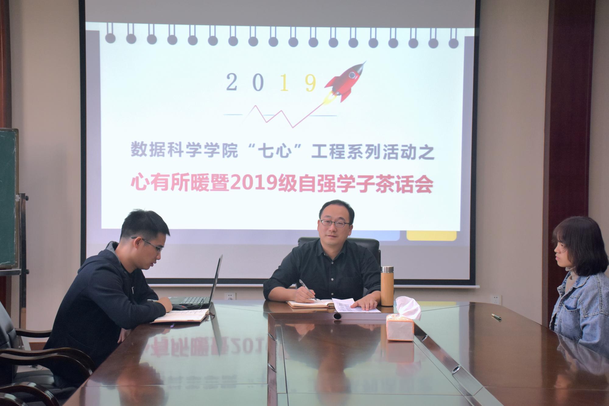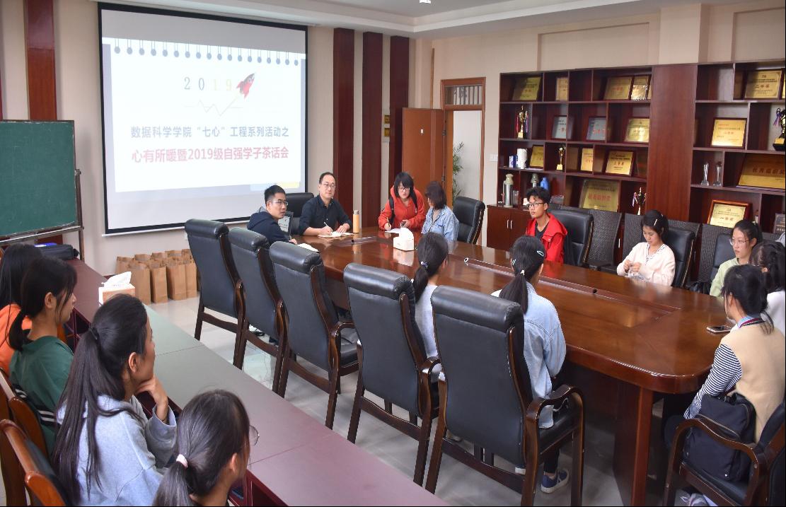 为促进2019级新生对学院建设的了解,增强数科学子的凝聚力与向心力,10月29日下午,“七心”工程系列活动之心有所暖暨2019级自强学子茶话会在学院楼6402顺利举行。本次活动由学院党委副书记刘向前主持,辅导员江挺以及2019级全体自强学子参加了此次活动。