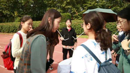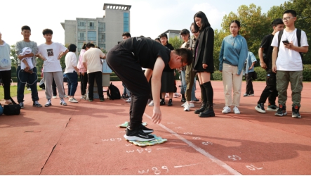 为了给萌新们留下难忘的记忆,我们还引进了《奔跑吧兄弟》的常驻“嘉宾”——指压板。两者相互配合,一人背着另一人跑过一定距离的指压板,而后第三与第四成员在蒙眼与指引的合作下将掉落在地上的矿泉水瓶一一捡起,随后第五名成员开始用筷子夹乒乓球,全部完成以后,最后成员用泡沫垫为前进的自己铺路。这一连贯的接力项目,考察的不仅仅是自己玩游戏的技巧,更是相互合作的默契程度。