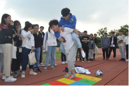 不知从哪里传来了一阵爆笑声,走近一瞧,原来是男生们在举行篮球接力比赛,这次的篮球赛不似从前那般激烈,男孩们不再使出抢球、扣篮等散发着雄性荷尔蒙的绝杀,而是将球夹在双腿间一蹦一跳地前行,虽然模样有些许“不堪入目”,而他们能够咬牙坚持,在球掉落时分以迅雷不及掩耳之势捡起,为旁观者们带来课余一乐。