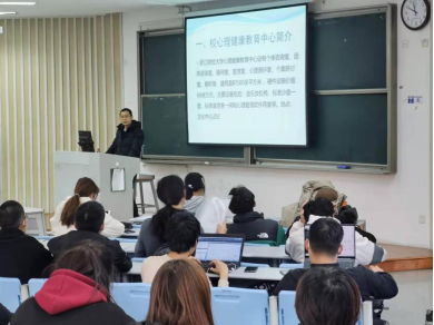 校心理健康中心副主任徐飞以解决心理问题为导向,从心理健康教育中心简介、寝室长的主要职责、需要关注的人群和自杀信号的识别四个部分展开讲解,为解决同学们的心理问题提出可行的措施,提醒大家要关注自身心理健康,发现寝室同学心理异常情况及时上报。