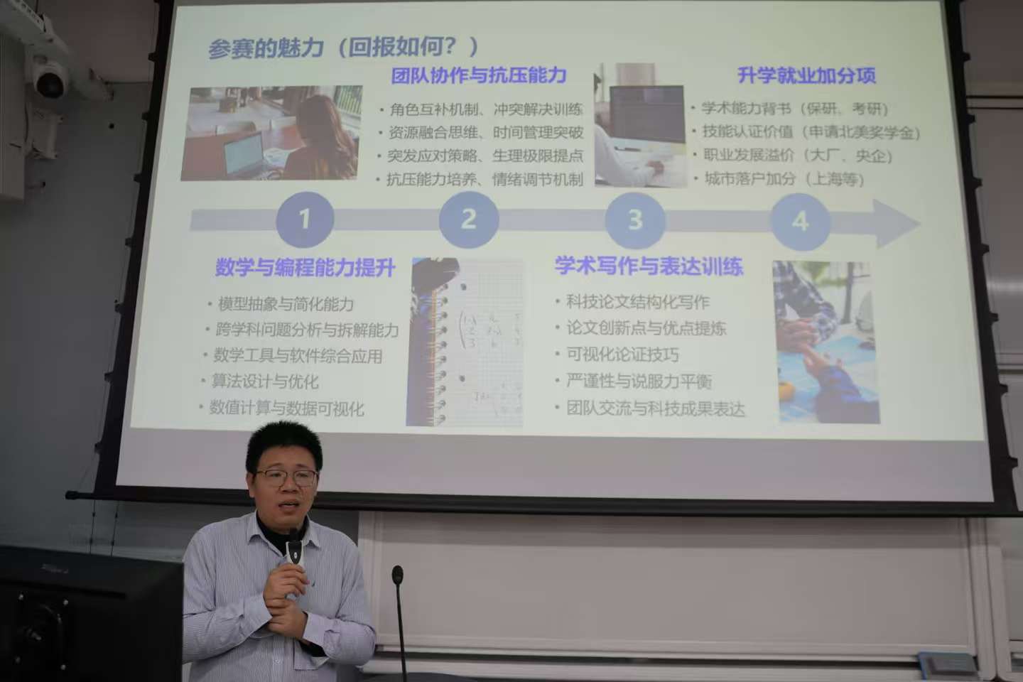 在下沙校区A303教室举办大学生数学建模竞赛指导讲座,邀请杭州电子科技大学的理学院副教授、博士、硕士生导师覃森担任主讲人,主题为“从‘小白’到‘达人’:大学生数学建模竞赛通关攻略”。覃森教授从“数学建模——用数学撬动世界”切入,依次揭秘数模竞赛的规则与魅力、讲解“梦之队”的组建分工逻辑、梳理从新手到“准高手”的备赛路线,并补充了竞赛制胜策略与常见误区提示,为有意参与数模竞赛的学生提供了系统性的实战指引。讲座由禁漫岛