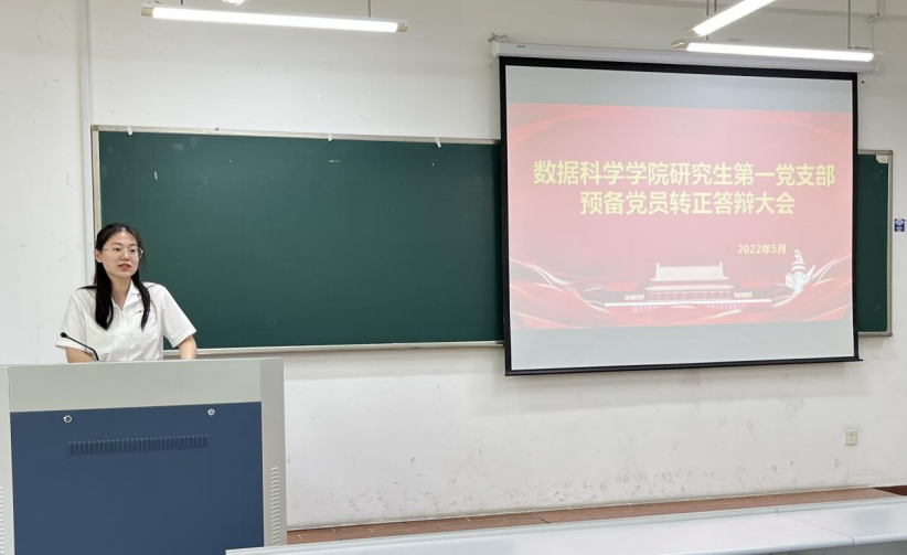 接着,研究生党支部进入预备党员接收议程。本次发展的党员依次上台进行思想汇报,培养联系人依次介绍发展对象的考察情况,并对其能否入党表明意见。支委员会报告了对发展对象的审查情况,经与会党员充分讨论,发展对象再次阐明入党决心,大会以无记名投票方式一致通过了本次发展党员的接收决议。