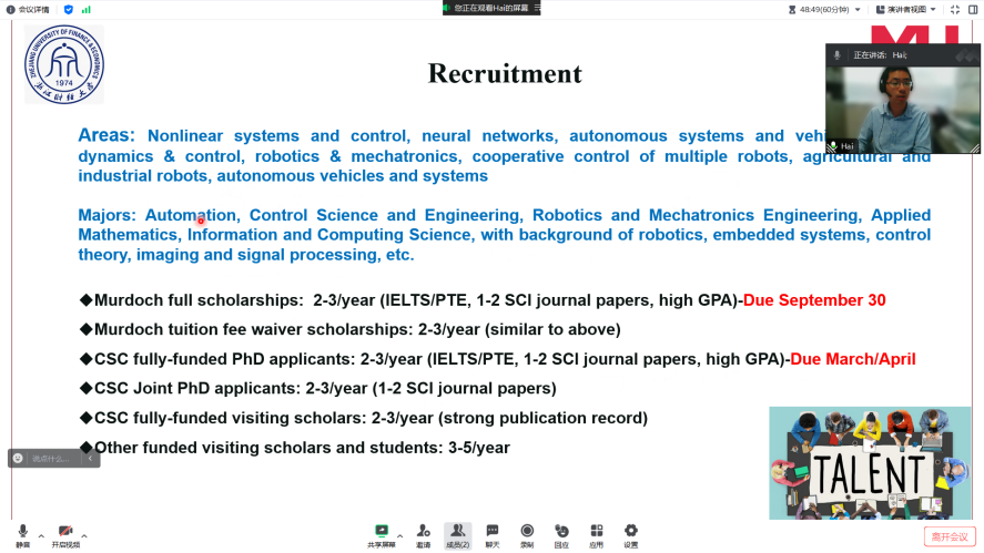 师生作了一场题为“Adaptive path tracking control of maize plant protection robot via extreme learning machine”的线上学术讲座。讲座由禁漫岛
