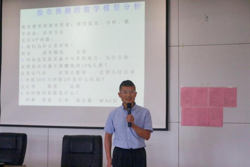王福来副教授的报告以形象生动的语言和诗歌体裁,从动力学、统计规律和实践经验的角度,就股市的可预测性向与会师生做了精彩的分享。统计学可以帮助一个人大致认识股市的规律,但动力学可以帮助一个人从实践中把握股市的关键点。王福来副教授提到股市投资需要一些统计学和动力学的基本知识,也需要很多时间和精力作为保障。股市是一门学问,不是随随便便就可以成功,因此大学生不适于现在投入过多精力在股市中,而应该把主要精力放在学业上。如果大学生对股市有兴趣,可以适当关注股票的运动特点。为了说明股市的规律和炒股的难度,王福来副教授还用10首哲理诗作了分析和总结。