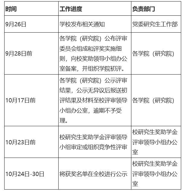 2.各学院(研究院)需相应成立研究生奖助学金评审委员会,由学院主要领导担任主任委员,分管领导担任副主任委员,研究生辅导员、导师代表、研究生代表任委员,负责制定本学院研究生国家奖学金评审实施细则及国家奖学金的申请组织、初步评审等工作。